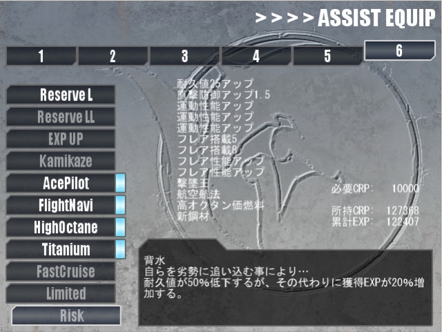M15までクリアでAnotherが出現、Enemyが出現時点でEXPが3039。 そこからずっと狼炎狩りだけやって、サポートを一つも持たないままEXPコンプ。 計算上は482機撃墜だが、狼炎に黒煙噴かせた瞬間にザコの体当たり連発で殺されたり 最後の一撃だけ横取りされてEXPが入らなかったりで、実際には520機は墜としてる。 んで、Armor10すら持ってないのでArmor50は出ないと思っていたのだが、実際には 既存装備に関係無く出現する模様。 EasyしかクリアしてなくてHC57しか持ってないのに、Armor50出現済みという チートっぽいデータができた。 http://cid-4a623cdf0654bf5c.office.live.com/self.aspx/%E5%85%AC%E9%96%8B/other/482down%5E_RouenKaiPlus.xes PR